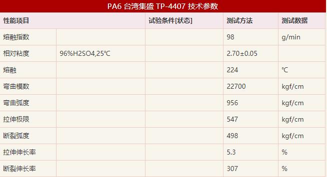PA6臺灣集盛 注塑級TP-4407 技術參數